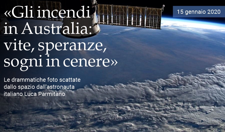15 gennaio 2020 - Una densa coltre di fumo e cenere che lambisce minacciosa una riserva naturale: è questa una delle foto più impressionanti degli incendi australiani scattate nelle ultime ore da Luca Parmitano, l'astronauta italiano dell'Agenzia spaziale europea (Esa) che a bordo della Stazione Spaziale Internazionale (Iss) si sta confrontando con i suoi compagni di equipaggio sulla portata «terrificante» del disastro, come dice lo stesso AstroLuca su Twitter.