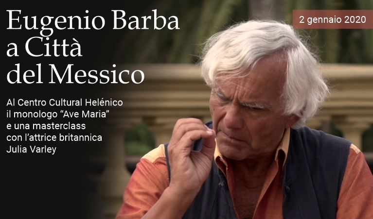 2 gennaio 2020 - Con la partecipazione del maestro Eugenio Barba (Brindisi, Italia, 1936), il 17 e 18 gennaio il Centro Cultural Helénico (CCH) di Città del Messico presenta il monologo “Ave María”, da lui scritto e diretto. Dedicato all'attrice italo-cilena María Cánepa, morta nel 2006, lo spettacolo appare al contempo come una messa e come una danza funebre in suo onore. Tutto nella scenografia riprende e ricorda la morte, tutto dalla morte è permeato e, in toni ironici o strazianti, è proprio la morte a svolgere la cerimonia cui siamo chiamati ad assistere. L'impressione è quella di trovarsi di fronte ad un rituale dalla matrice profondamente arcaica in cui confluisce un sacro sedimentato da millenni. All'interno di questo sentimento arcaico si innesta la storia dell'incontro fra l'attrice inglese Julia Varley e María Cánepa, che viene rievocato anche attraverso l'intrecciarsi delle loro voci: in un leggero controtempo, infatti, Varley insegue la voce registrata dell'amica, restituendole presenza e vita. «Questo, che sarà uno degli eventi scenici più importanti nel 2020» —afferma il CCH in una nota— «permetterà di ammirare l'arte della regia teatrale, nonché il grado di perfezione a cui un artista può aspirare». Eugenio Barba, fondatore e direttore della compagnia multiculturale Odin Teatret, è ritenuto, insieme a Peter Brook, l'ultimo maestro occidentale vivente ed è una delle figure di spicco del teatro contemporaneo a livello mondiale. Domenica 19 gennaio il regista pugliese offrirà, insieme a Julia Varley, la master class “Pensando en acciones”, con esercizi specifici per illustrare il modo in cui, sulla base di domande e formulazioni, è possibile elevare la recitazione alla sua massima espressione. (massimo barzizza / puntodincontro.mx)