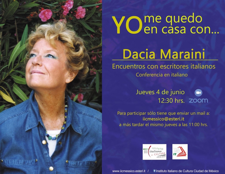 2 giugno 2020 (ore 8:31) - L’Istituto Italiano di Cultura di Città del Messico (IIC) presenta una serie di videoconferenze dal titolo Yo me quedo en casa con…. Ogni giovedì alle 12.00 uno scrittore italiano parla del Covid-19 e della sua esperienza nei tre mesi di isolamento in casa, di come è cambiato il suo modo di scrivere, lavorare e interpretare il presente e il futuro che ci attende. Gli scrittori che partecipano alle videoconferenze sono stati tradotti in spagnolo dal Laboratorio Traduxit. Alcuni di loro sono stati presentati negli ultimi anni dall’IIC alla Fiera del Libro di Guadalajara o verranno in Messico non appena sarà possibile. Giovedì 4 giugno alle ore 12.00 l'ospite di questo ciclo sarà Dacia Maraini in una videoconferenza in italiano. Oltre a raccontarci come ha vissuto l’esperienza della pandemia, Maraini affronterà i temi che le sono cari e che sono presenti nei suoi romanzi e nella sua attività di pubblicista: le donne e la violenza di genere, il razzismo, la mafia, il bisogno di giustizia, ma anche l’amore, il rapporto con il prossimo, la gioia di vivere, la responsabilità sociale, il dialogo tra le generazioni. Avremo modo anche di scoprire in anteprima il suo ultimo romanzo Tra noi, una storia di due donne innamorate dello stesso uomo sullo sfondo della peste di Messina del 1743. Il romanzo, edito da Rizzoli, sarà in libreria in Italia a fine giugno. Sarà un’occasione imperdibile per ospitare nelle nostre case una delle più grandi scrittrici italiane e dialogare con lei. La videoconferenza si terrà sulla piattaforma Zoom (capacità limitata a 100 partecipanti) e in diretta su Facebook Live. Per partecipare alla videoconferenza si dovrà mandare una mail all’indirizzo iicmessico@esteri.it entro il 4 giugno alle ore 11.00.