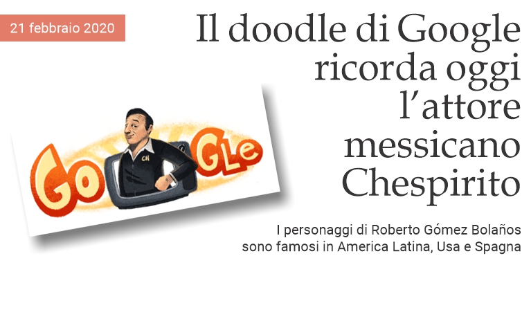 21 febbraio 2020 (ore 02:52) - Roberto Gómez Bolaños, attore e sceneggiatore messicano, viene ricordato oggi dal doodle di Google in occasione del 91esimo anniversario della sua nascita. Per la sua abilità nello scrivere storie gli fu dato il nome d’arte di “Chespirito”, diminutivo della pronuncia in lingua spagnola del cognome di William Shakespeare, foneticamente Cekspir. Fu autore di alcuni dei programmi più seguiti della televisione latinoamericana, dando vita a personaggi di grande successo.