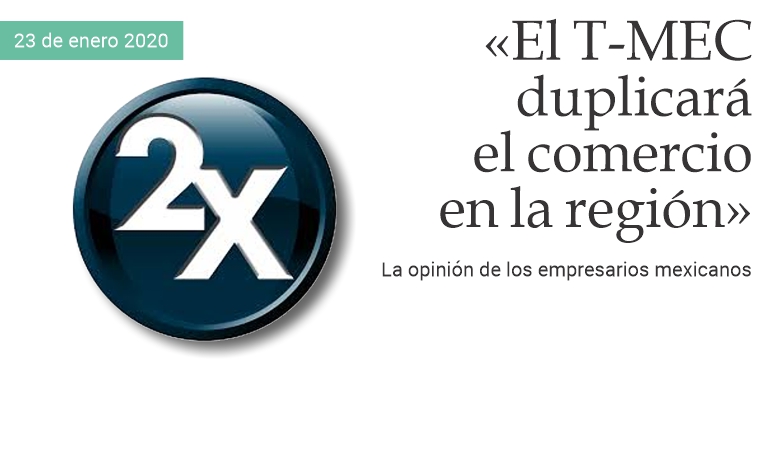 23 de enero de 2020 - En la Ciudad de México, Eugenio Salinas, integrante del Cuarto de Junto del Consejo Coordinador Empresarial (CCE) durante las negociaciones del USMCA (T-MEC en español), y Moisés Kalach, coordinador del Consejo Consultivo Estratégico de Negociaciones Internacionales (CCENI) afirmaron que el nuevo acuerdo comercial entre México, Estados Unidos y Canadá incrementará hasta 7% el comercio entre los tres socios norteamericanos desde su primer año de entrada en vigor y lo duplicará en menos de una década. Los empresarios mexicanos advirtieron, sin embargo, que se requiere que el gobierno encabezado por el presidente Andrés Manuel López Obrador ponga las condiciones propicias para generar confianza en los inversionistas, sobre todo tomando en cuenta que México salió en 2019 de la lista del top 10 en la atracción de capitales extranjeros. «Nuestra red de acuerdos de libre comercio nos coloca en un lugar privilegiado del mundo, pero aún faltan aspectos locales, como el mejoramiento de la certeza para la inversión, políticas claras a largo plazo y el fortalecimiento de la seguridad pública y jurídica», explicó Kalach, que durante los tres años de las negociaciones del T-MEC acompañó al gobierno federal. (massimo barzizza / puntodincontro.mx)