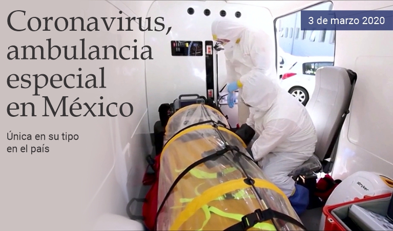 3 de marzo de 2020 (12:46 hrs.) - La Secretaría de Salud del Estado de Jalisco habilitó una ambulancia especial para traslado de pacientes probables o confirmados de Coronavirus. El secretario técnico del Sistema de Atención Médica de Urgencias, (SAMU), Yannik Nordín Servín, presentó el vehículo —único en su tipo en el país— denominado Unidad de Terapia Intensiva Móvil (UTIM). «Es [una ambulancia] específica» —explicó— «para personas contaminadas por el Coronavirus y nos es muy útil en caso de pacientes intubados y ventilados. Cuenta con una cápsula de aislamiento y con equipo de terapia intensiva, en caso de requerirlo». La ambulancia fue puesta a disposición de cualquier hospital o instancia del sector salud y tuvo un costo de 800 mil pesos (aproximadamente 37 mil euros).
