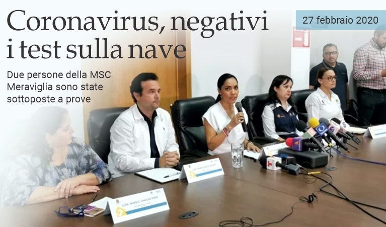 27 febbraio 2020 (ore 16:55) - I risultati degli studi effettuati oggi a un membro dell'equipaggio e a un passeggero della nave da crociera MCS Meraviglia, attraccata stamattina a Cozumel, hanno escluso il coronavirus, secondo quanto riferito dal Segretariato della salute dello Stato di Quintana Roo (Sesa). Le analisi sono state condotte da Sanidad Internacional —appartenente ai servizi sanitari statali— a un 27enne delle Filippine membro dell'equipaggio che aveva sintomi di influenza stagionale e a una turista di 13 anni di nazionalità francese, che aveva iniziato a sentirsi male. In conferenza stampa, la responsabile del Sesa, Alejandra Aguirre Crespo, ha spiegato che sebbene gli studi abbiano dimostrato l'inesistenza di un quadro corrispondente al coronavirus, è necessario determinare il tipo di patologia respiratoria di entrambi i pazienti prima di consentire lo sbarco dalla nave. Le analisi sono state inviate ai laboratori di Chetumal e i risultati saranno pronti stasera, ha affermato la funzionaria, sottolineando di aver aderito alle procedure previste dai protocolli nazionali e internazionali e nazionali per casi di questo tipo. (massimo barzizza / puntodincontro.mx)