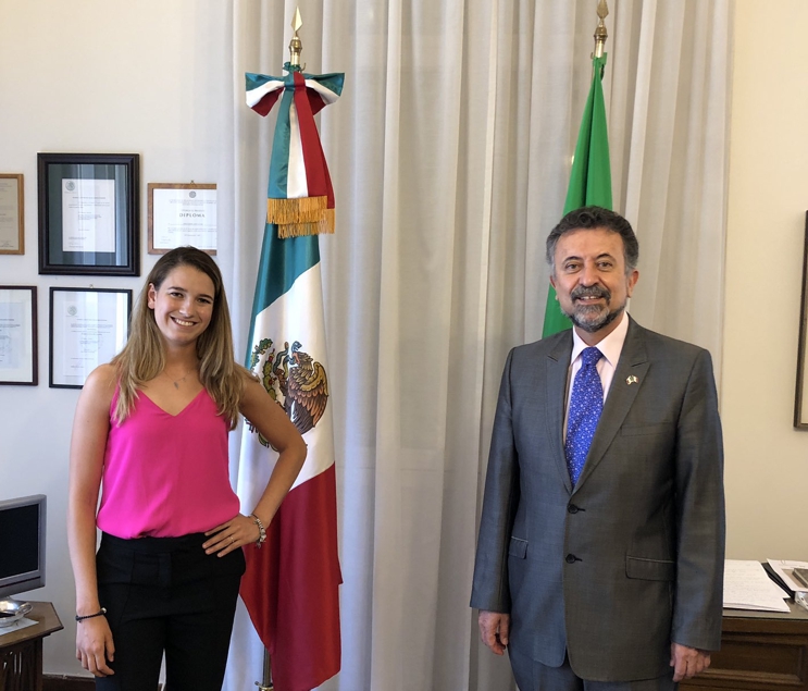 2 de julio de 2020 (18:27 hrs.) - Hoy el embajador de México en Italia, Carlos García de Alba, recibió en la sede de Via Lazzaro Spallanzani a Paulina Armería Vecchi, taekwondoína nacida hace 24 años en la Ciudad de México, medalla de oro en Barranquilla 2018 y de plata en los juegos Panamericanos de 2015. «Llegará muy lejos», escribió el jefe de la diplomacia mexicana en el Bel Paese en su cuenta de Twitter. El abuelo de Paulina —Remo Vecchi, nacido en Parma en 1932— era un ciclista que también compitió con la selección nacional italiana, antes de mudarse a México a los 21 años y convertirse en protagonista, unos años más tarde, del desarrollo de la marca de motocicletas Carabela. Y así ella creció entre historias familiares y la pasión por Italia: «Siempre he seguido también a la selección nacional de fútbol, ¡qué fiesta tuvimos para la victoria de la Copa del Mundo en 2006!», dijo en una entrevista de Chiara Soldi publicada por la Gazzetta dello Sport el pasado 26 de mayo. Después de participar en varias competiciones con el equipo nacional mexicano y un encuentro casual con Carlo Molfetta —coordinador del equipo de los azzurri de taekwondo— se mudó a Roma en noviembre del año pasado. Gracias a la doble ciudadanía, ahora entrena con el equipo nacional italiano. El coronavirus ha detenido el deporte y, por lo tanto, también su debut, pero solo está pospuesto: «Espero ese día en que pueda luchar con la bandera italiana en mi pecho».